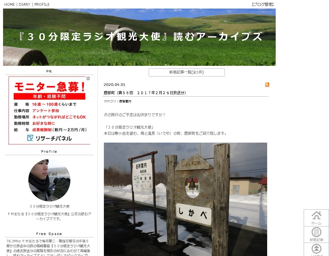 4月1日より「『30分限定ラジオ観光大使』読むアーカイブズ」というタイトルで、過去の放送原稿を基に現在の状況に合わせて再編集し、ブログ形式で掲載を始めました。