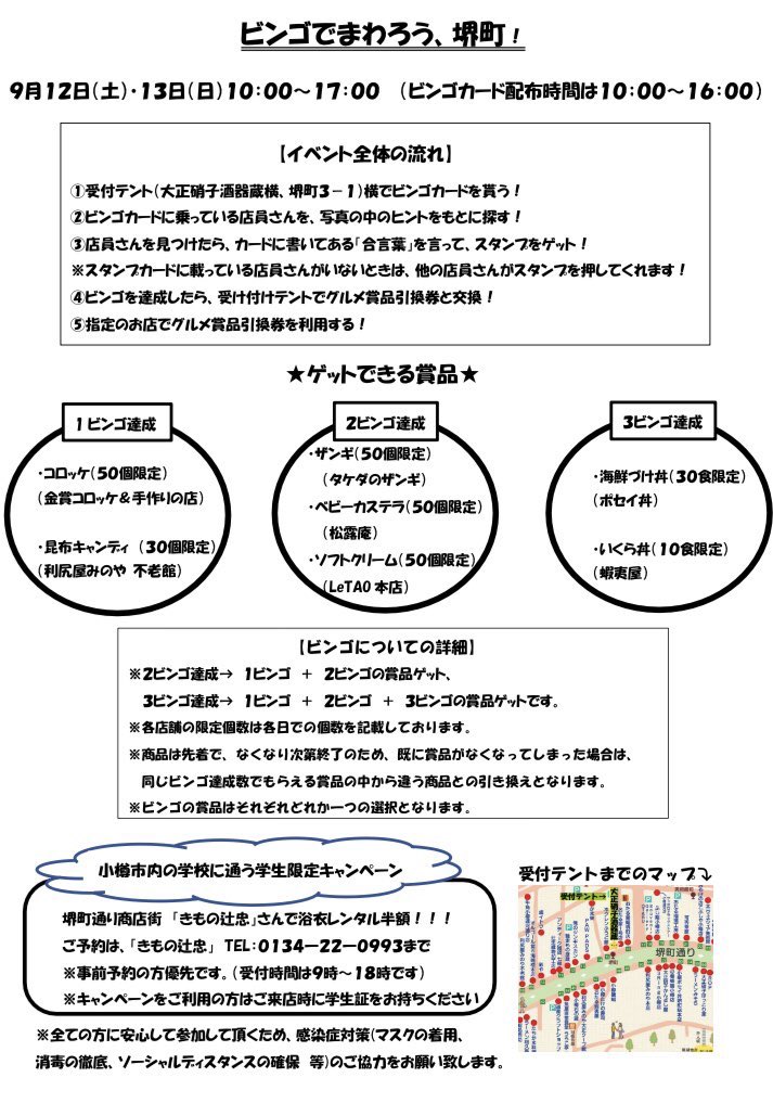 9月12日、13日は『ビンゴでまわろう、堺町!』